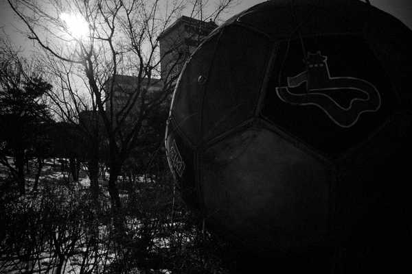 天気が良かったので散歩してると、空き地にサッカーボール発見。