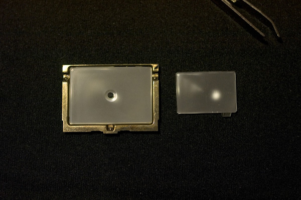 こちらが取り出したファインダースクリーン。左がMGのもので右がistDのもの。