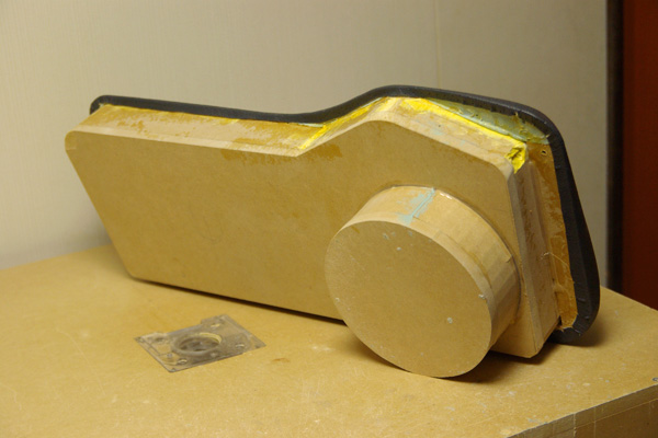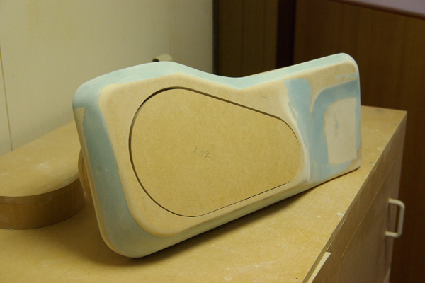 ドアのエンクロージャーもドアに仮止め、パテ盛り、削りを繰り返して形状を煮詰めていきます。