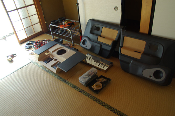 これから取り付けるもの一式です。Aピラーはすでに車に取り付けてあるのでここにはありません。