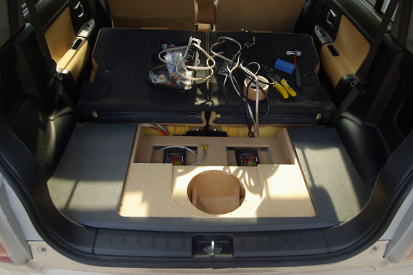 配線で重要となるポイントは、まず電源ケーブルをエンジンルームからバルクヘッドを通して室内に引き込むこと。
