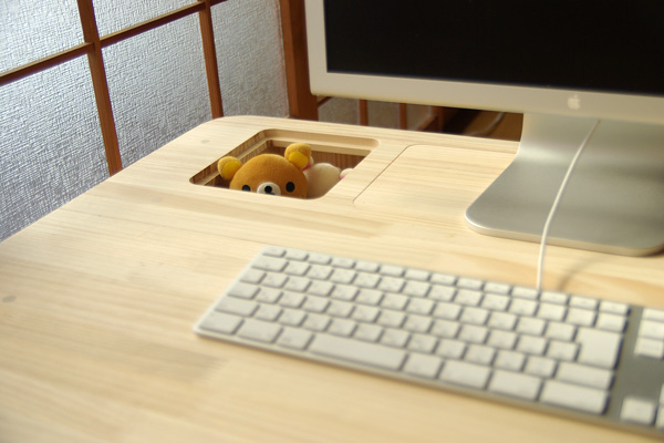 天板にはスピーカーを埋め込めるよう、左右にポケットを用意してます。