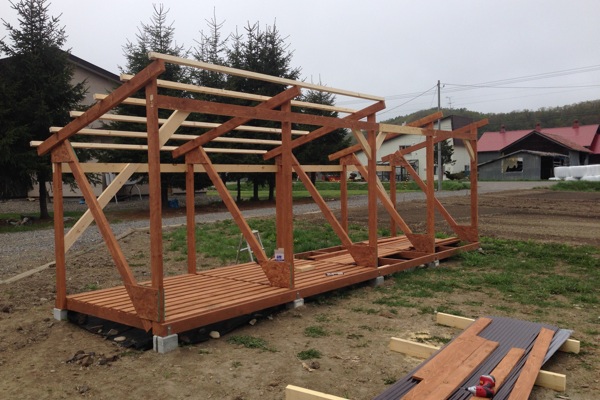 垂木を取り付けた後はポリカーボネートの板を貼付けます。